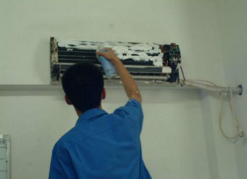| 温州市空调维修师傅给温州市用户上门维修清洗空调。 |